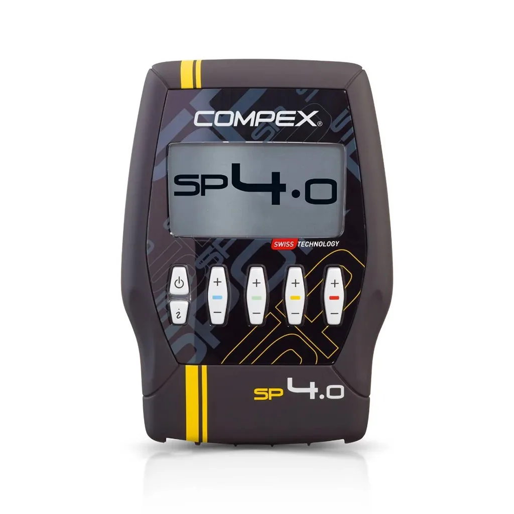 Compex SP 4.0 is the wired 4-channel EMS + TENS system with advanced MI features—MI-Scan, MI-Range and MI-TENS—and 30 pre-programmed modes for training, recovery, and rehab.